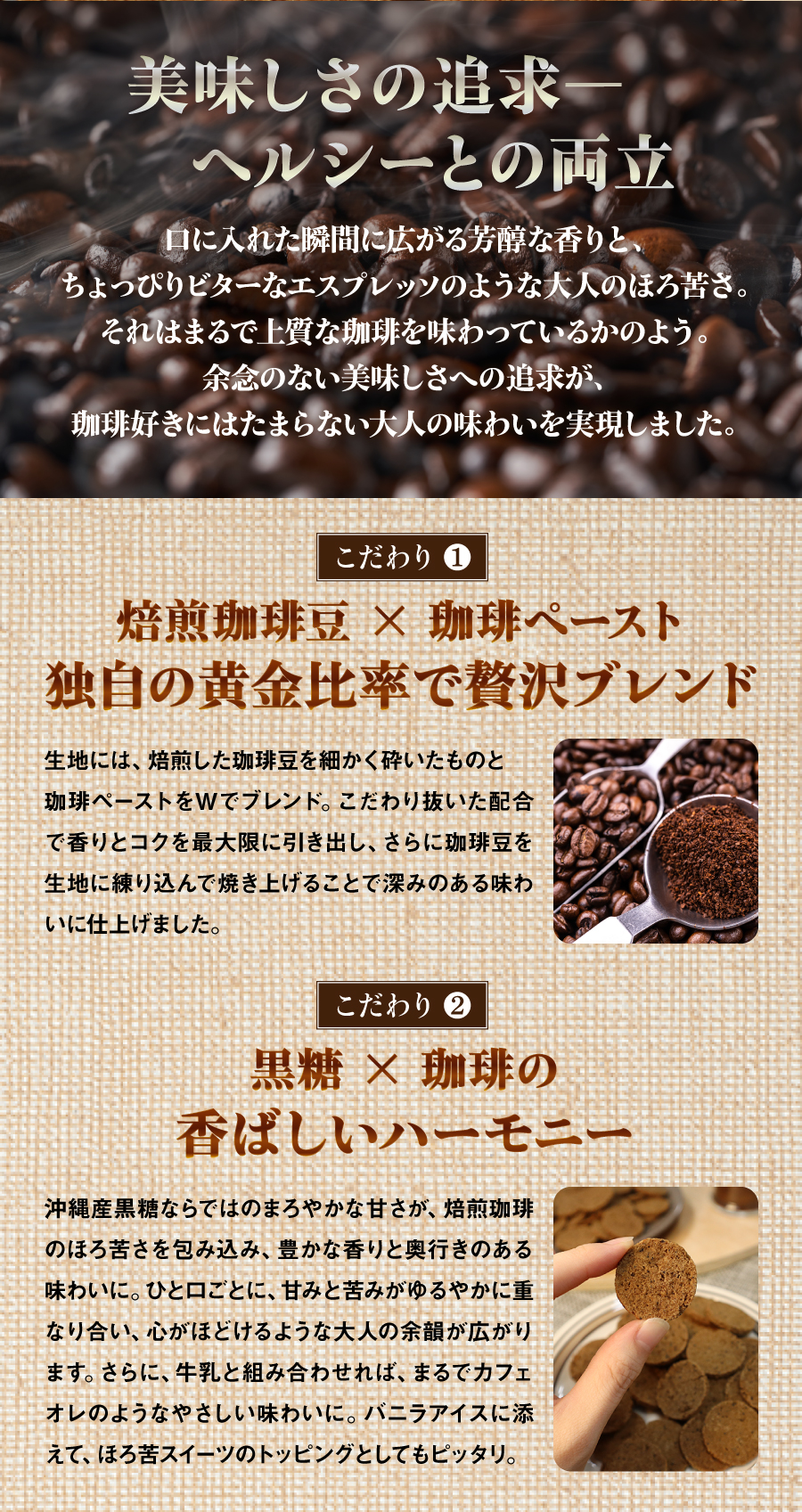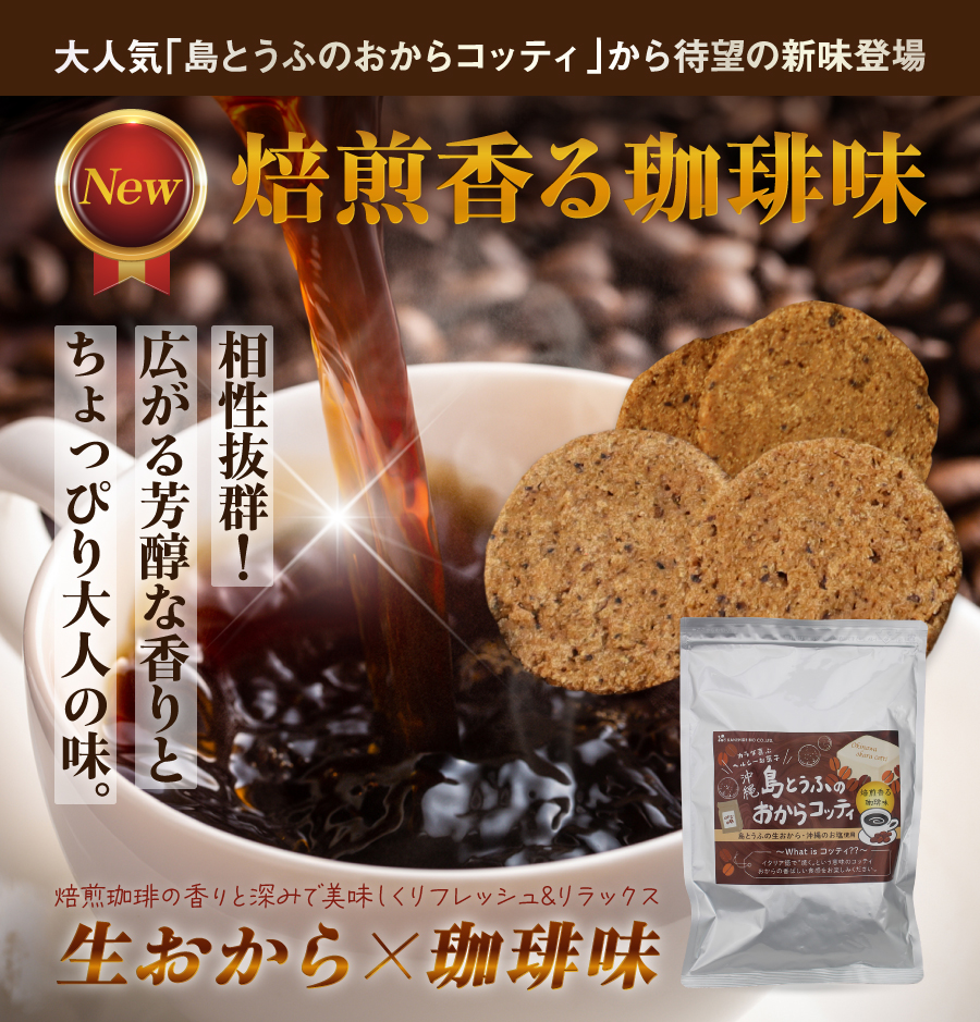 | 商品説明 | 沖縄島豆腐の生おからを使用したおからクッキー。焼き菓子のコッティのようにザクッとした食感がポイント!素朴な甘さが逆にクセになってしまうというお声も多数。美味しすぎてついつい手が伸びてしまう…けどヘルシーな新しいおからクッキーを是非ご賞味ください!!! コーヒー味は少しビターで甘いものが苦手な方にも♪ |